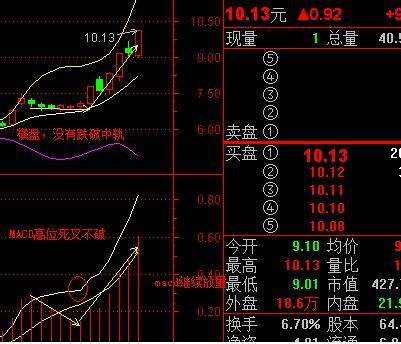 這樣的股票,橫盤突破之后,沿著布林帶上軌繼續上行,下方的中軌線也要緊緊跟上,如果跟不上很有可能出現量價背離回調!